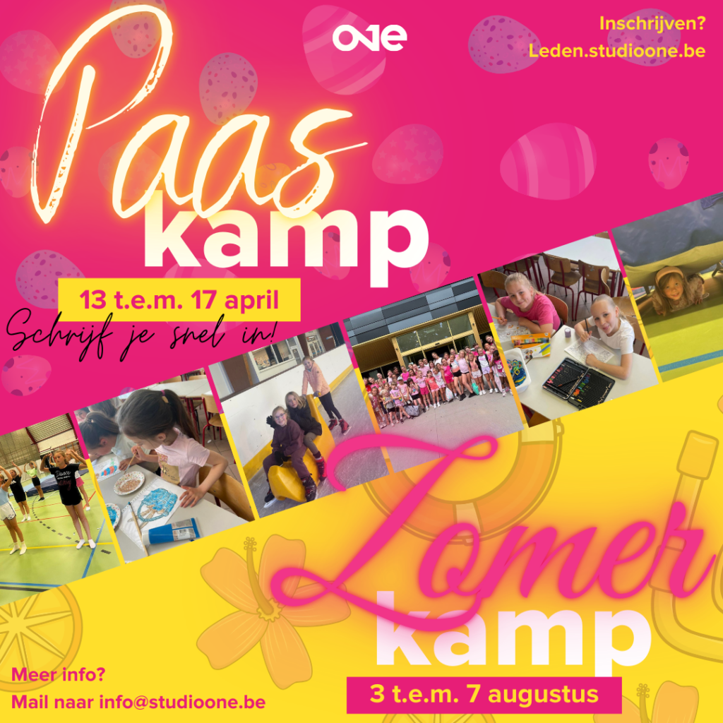 Ben je tussen 3 en 12 jaar? Goed nieuws, want na het succes van onze vorige kampen organiseert Studio One in april & augustus opnieuw haar danskampen! Van 13 t.e.m. 17 april (Denderleeuw), van 3 t.e.m. 7 augustus (Denderleeuw) en van 10 t.e.m. 14 augustus (Haaltert) kan je bij ons terecht voor een hele week vol dans, sport, spel en knutselplezier! De week sluiten we dan uiteraard ook af met een heus toonmoment voor alle ouders. Zowel voor leden als niet-leden!